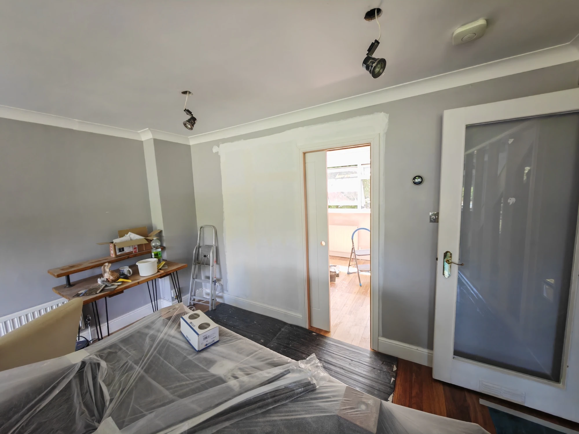 We completely removed the hallway structure and rebuilt the wall to create a clean, flush line within the bedroom. A new opening was formed to allow direct access to the bathroom from the bedroom, using a sliding pocket door integrated within the wall. This solution removed the need for a separate corridor while preserving privacy and maximising usable floor area.