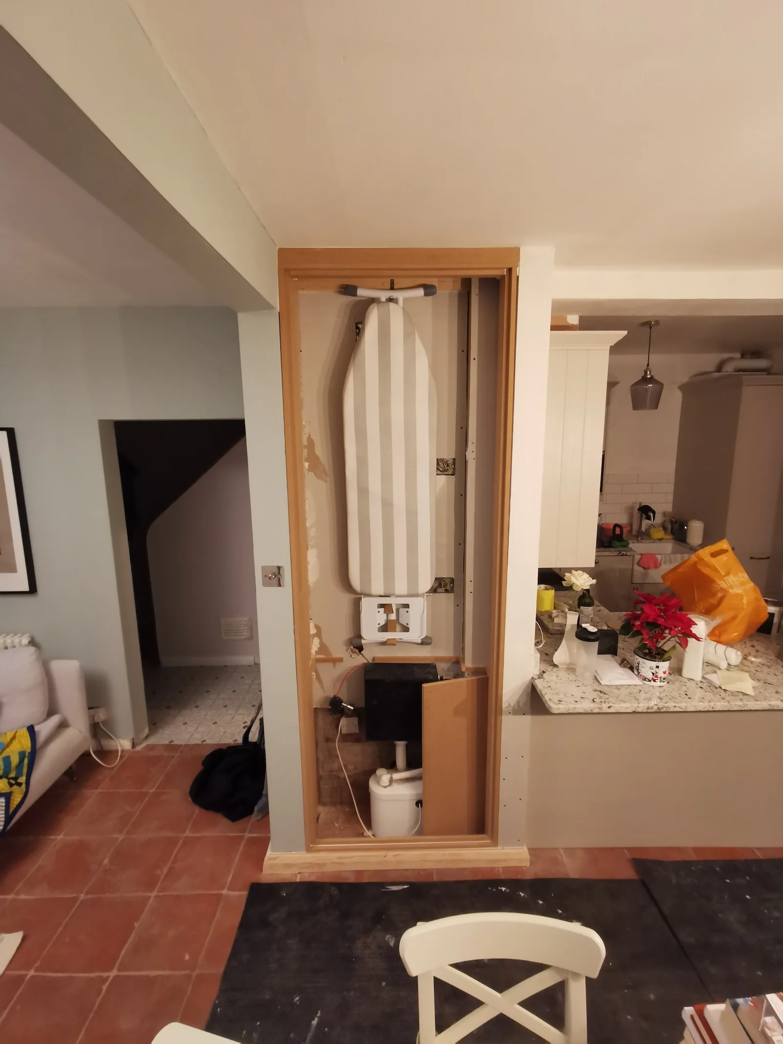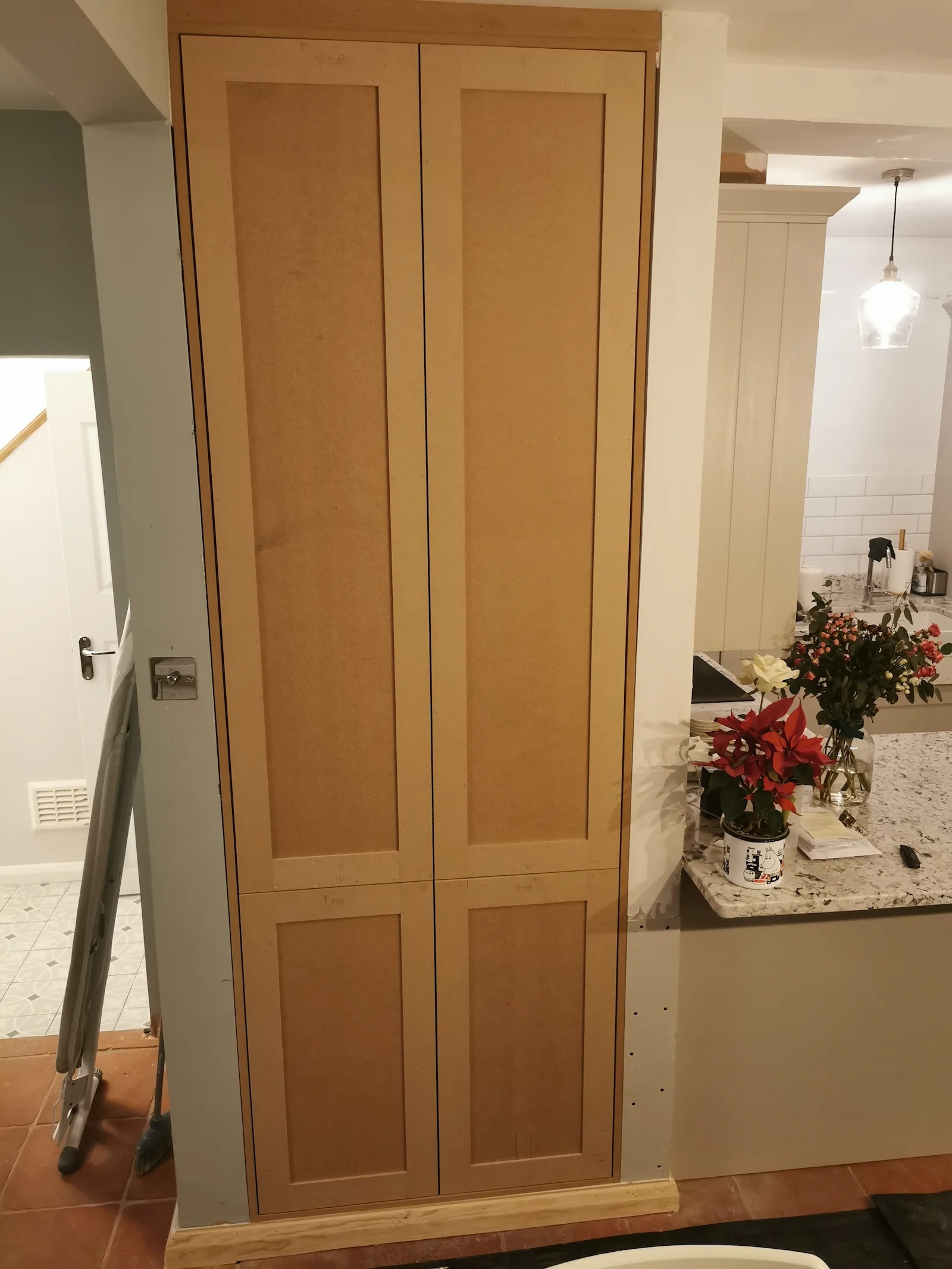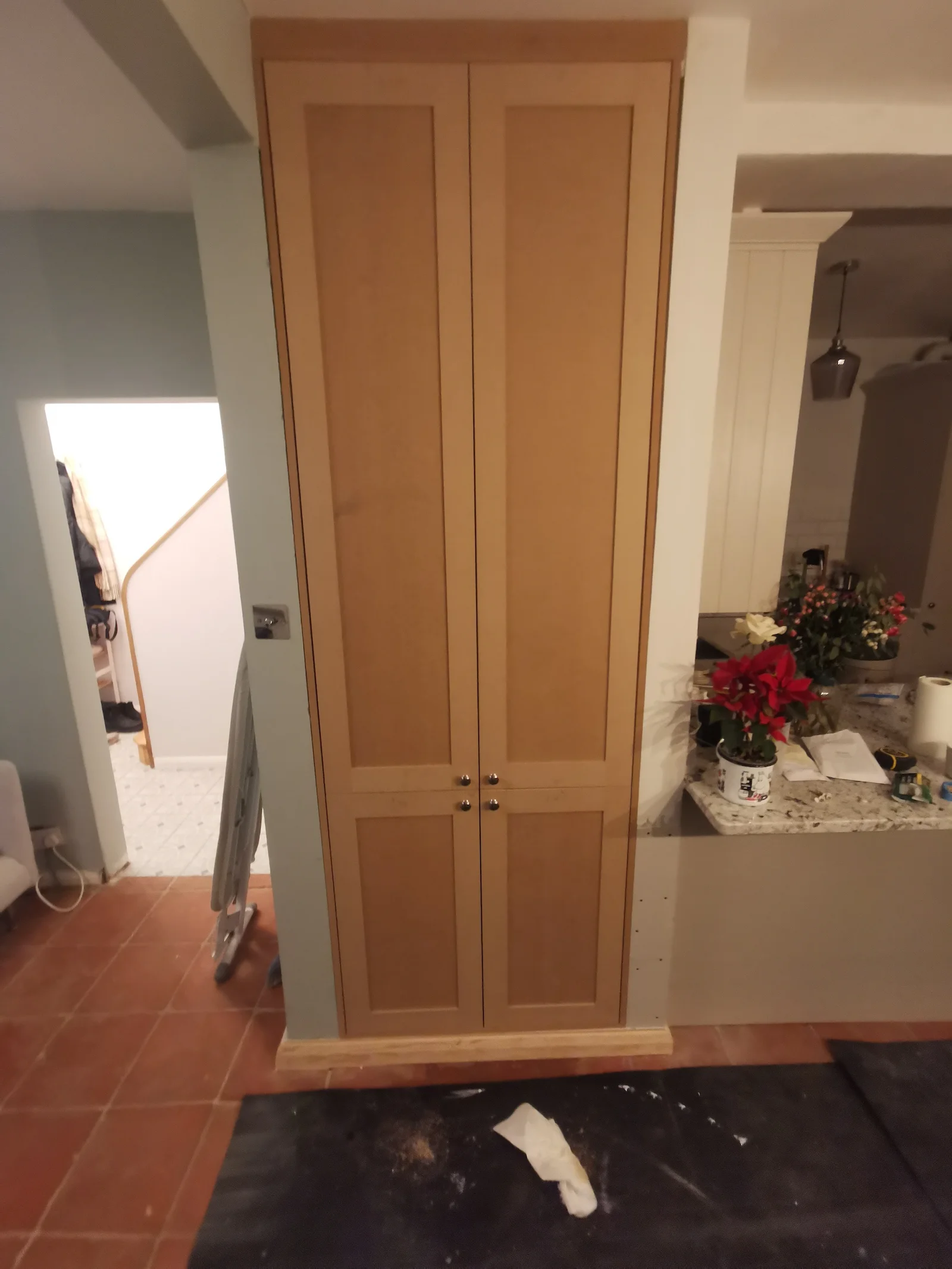 As part of our project scope, we designed and installed a purpose-built storage unit in a designated nook. The deliberate choice of ‘shaker style’ finishing for the doors was made to seamlessly align with the existing furniture of our client’s home, which includes the kitchen and alcove cupboards.
