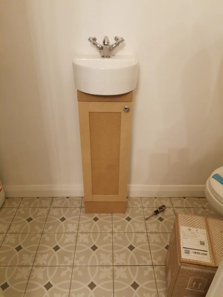 Additionally, for cosmetic enhancements, we crafted a small vanity unit located under the sink in a compact bathroom on the ground floor of the house. These tailored installations not only optimise storage but also contribute to the overall aesthetic cohesion of the living space.