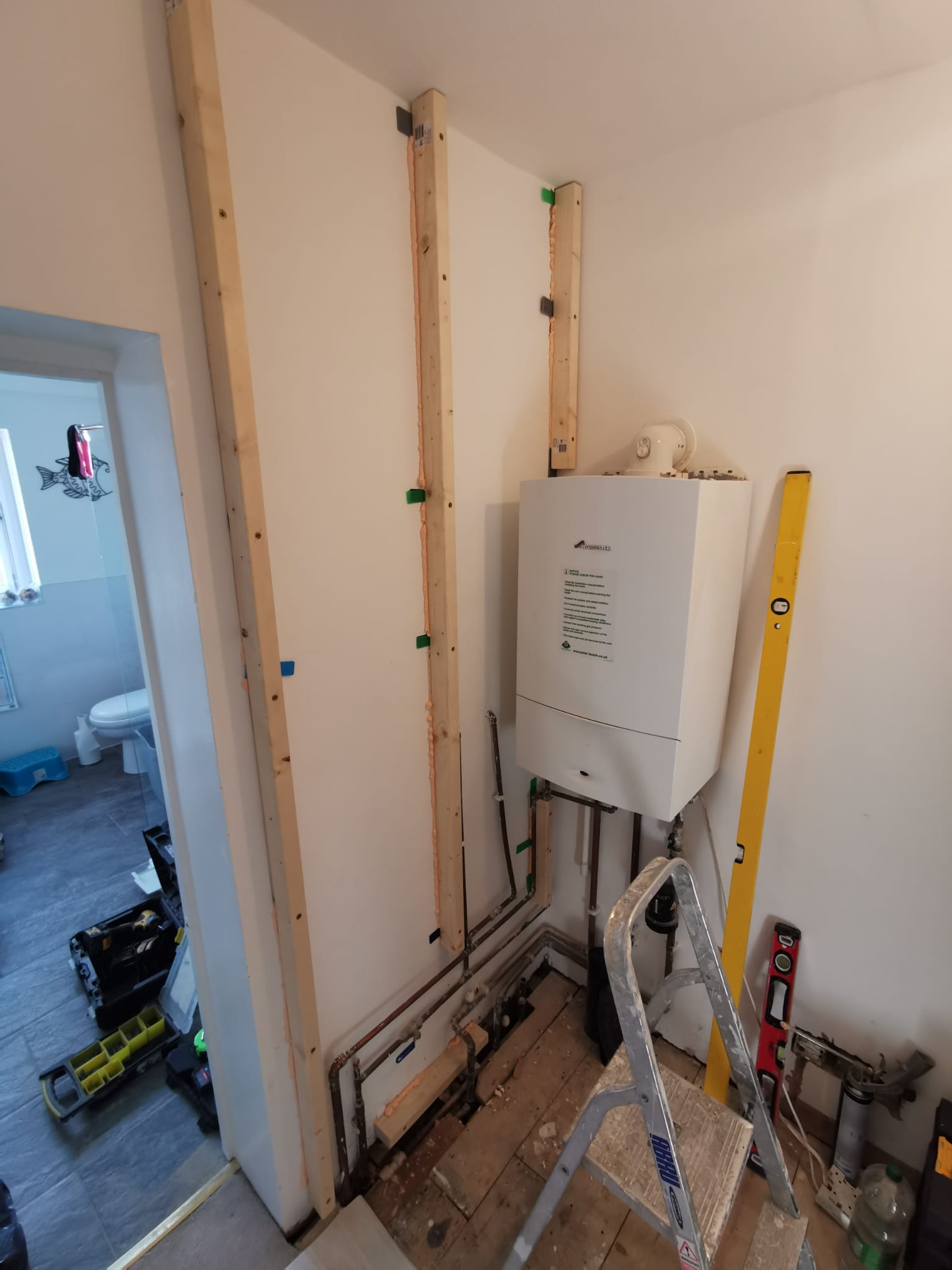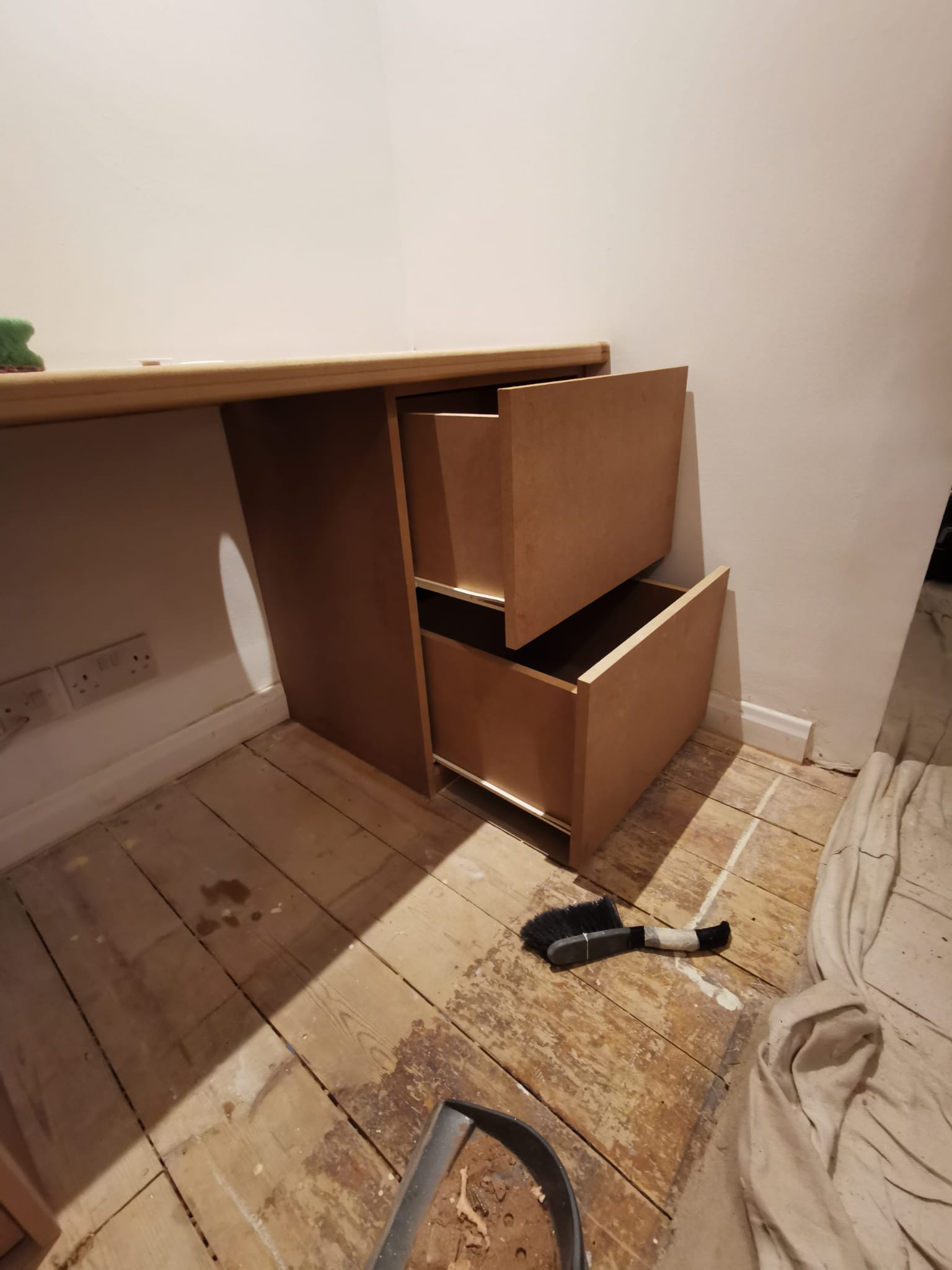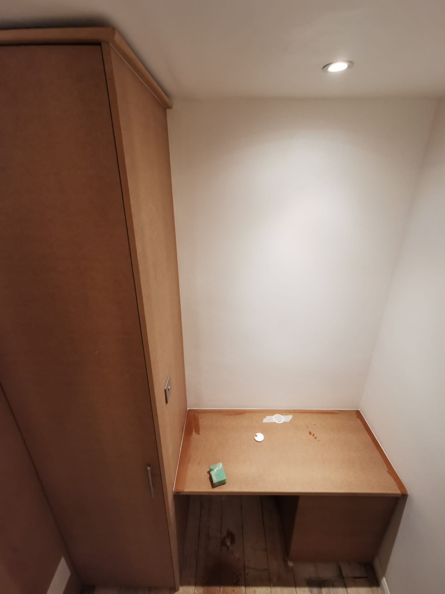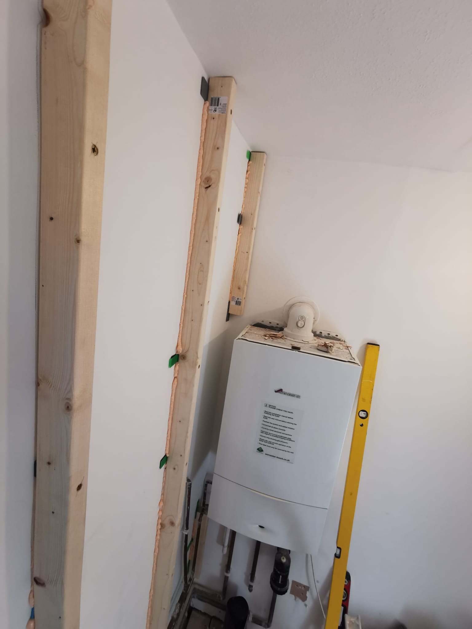 With this project, we turned the unused, empty boiler room into a cosy working space. This involved making a thick, soundproof cupboard for the boiler as well as a custom made desk and shelves made from reclaimed timber.